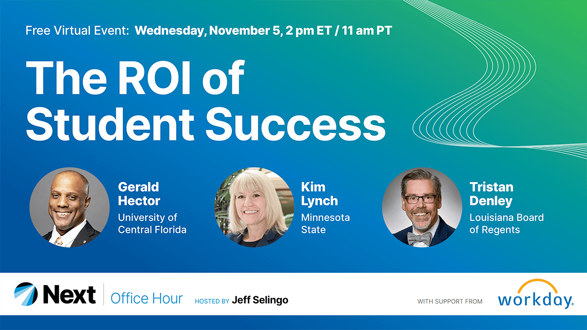 The Next Office Hour, named after Jeff’s newsletter, and other events throughout the year provide new insight and practical advice to college leaders as well as the consumers of higher ed–students, families, counselors, and employers.